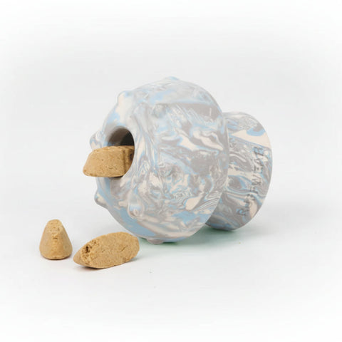 The toy bounces unpredictably for exciting games of fetch, and it dispenses treats for interactive play. Made for moderate chewers, it works with standard ball throwers and is both dishwasher safe and FDA-approved for food contact.